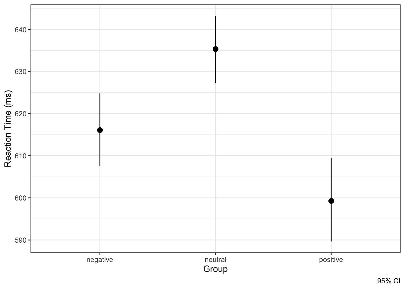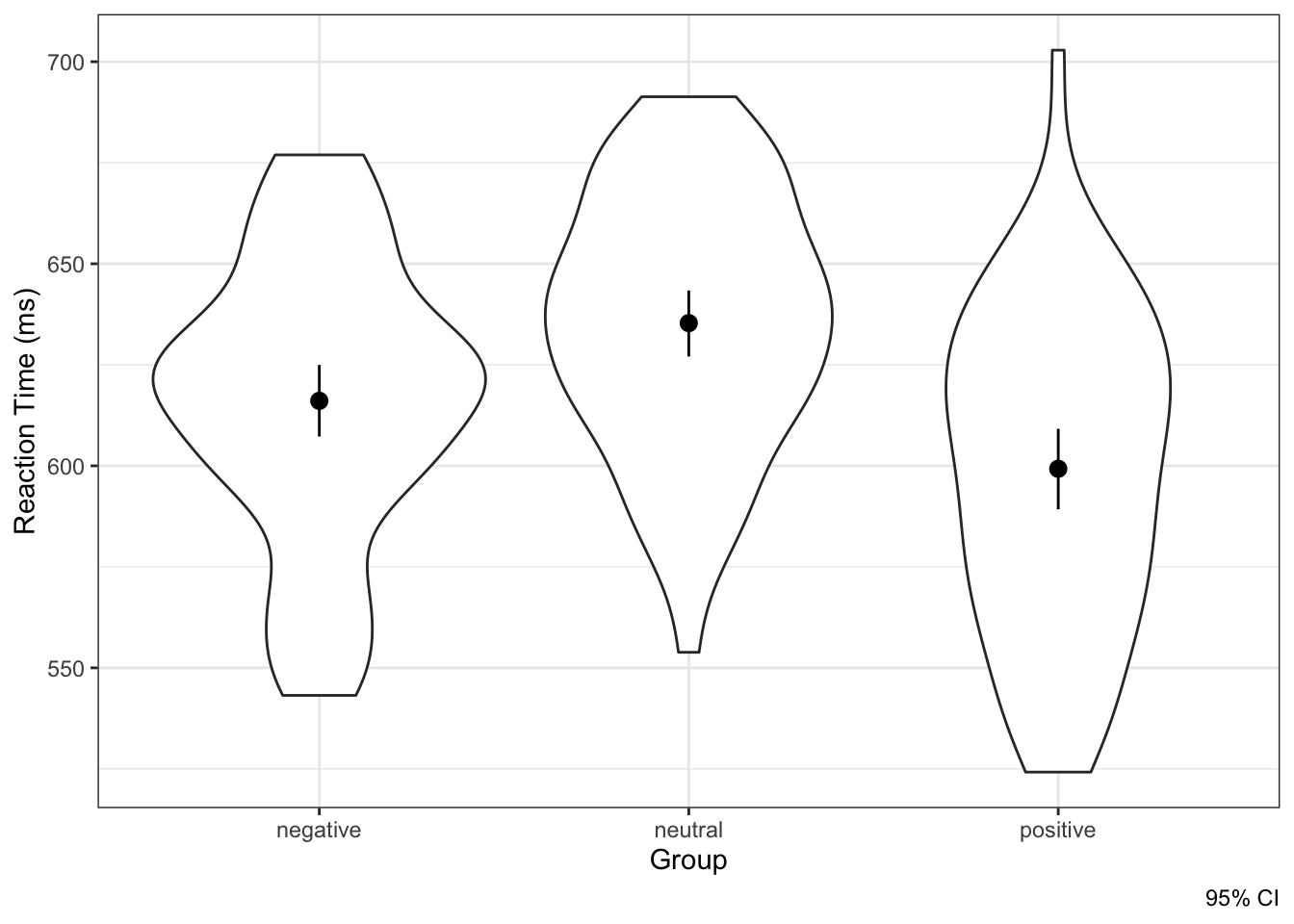 Что мы, собственно, выясняем? Вернемся к задумке эксперимента — мы хотим узнать, связана скорость опознания слова с его эмоциональной окраской. Как эта связь будет выглядеть в данных?