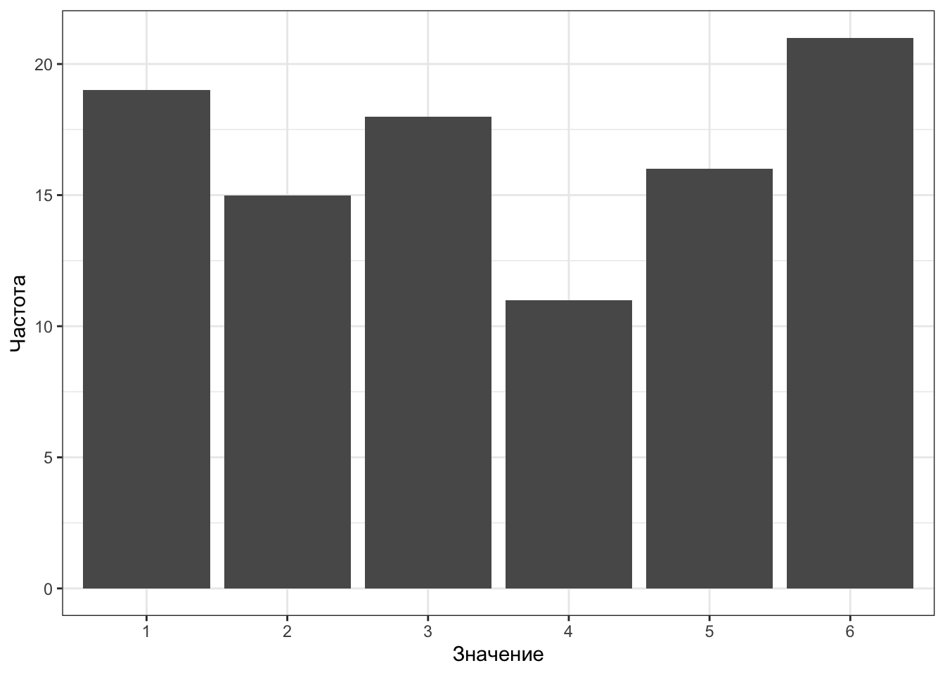 | Частота | 19 | 15 | 18 | 11 | 16 | 21 |