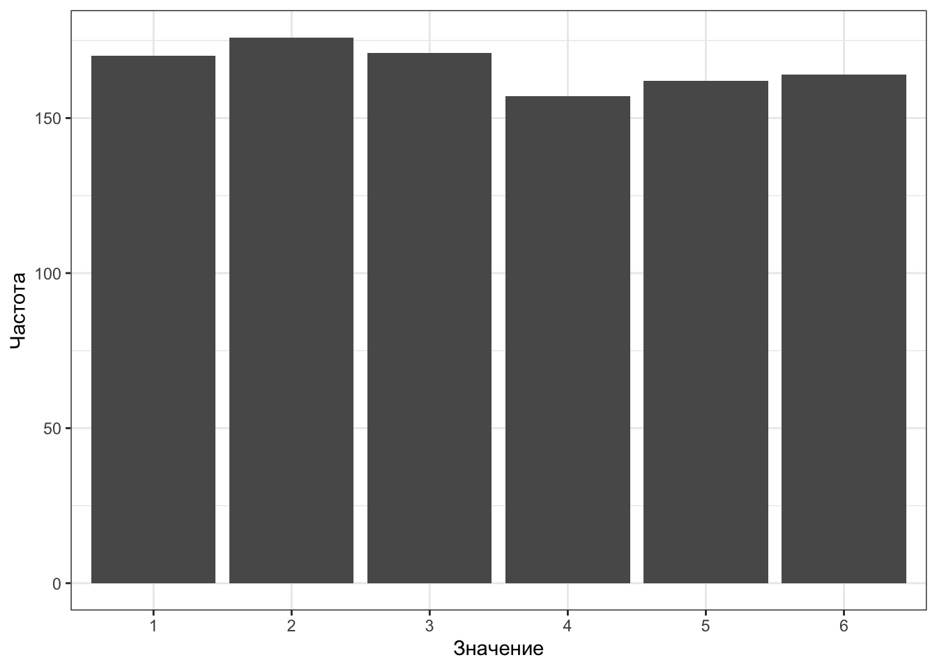 | Значение | 1 | 2 | 3 | 4 | 5 | 6 |