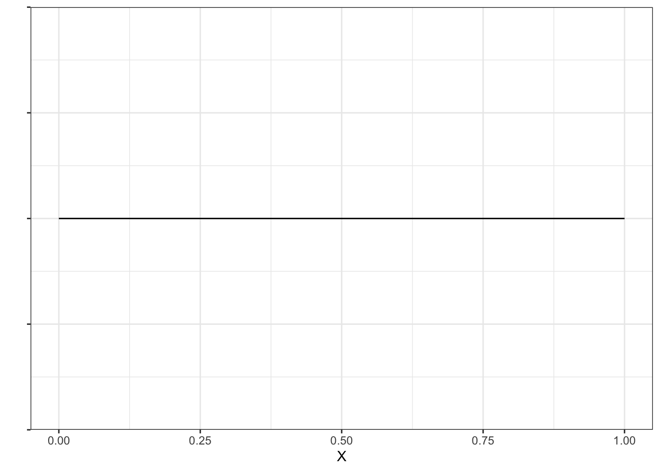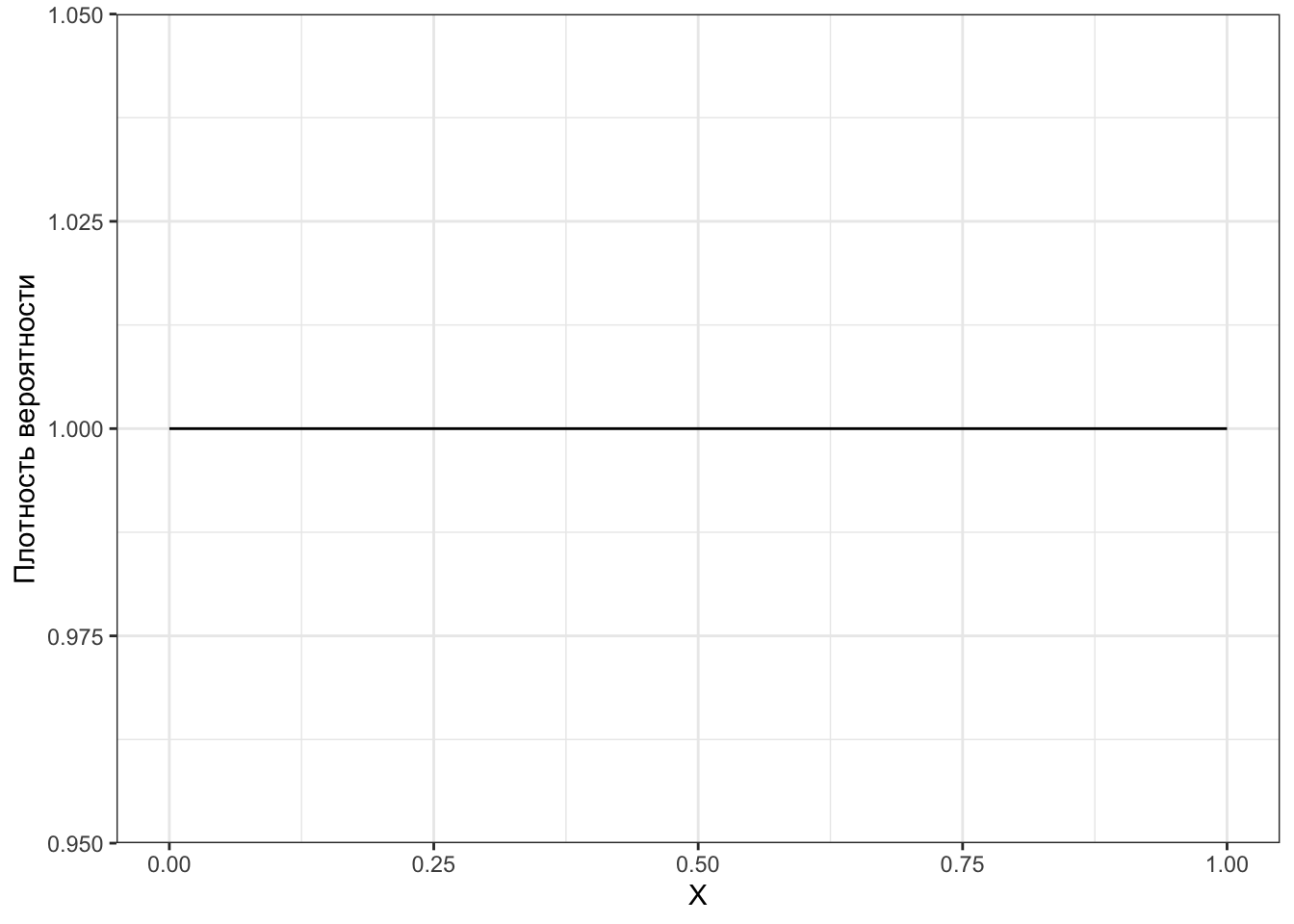 Собственно, для непрерывного равномерного распределния график плотности вероятности будет выглядеть именно так, как мы нарисовали — разве что надо ось \(y\) подписать и значение поставить.