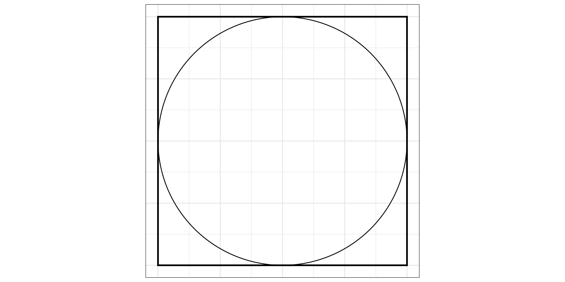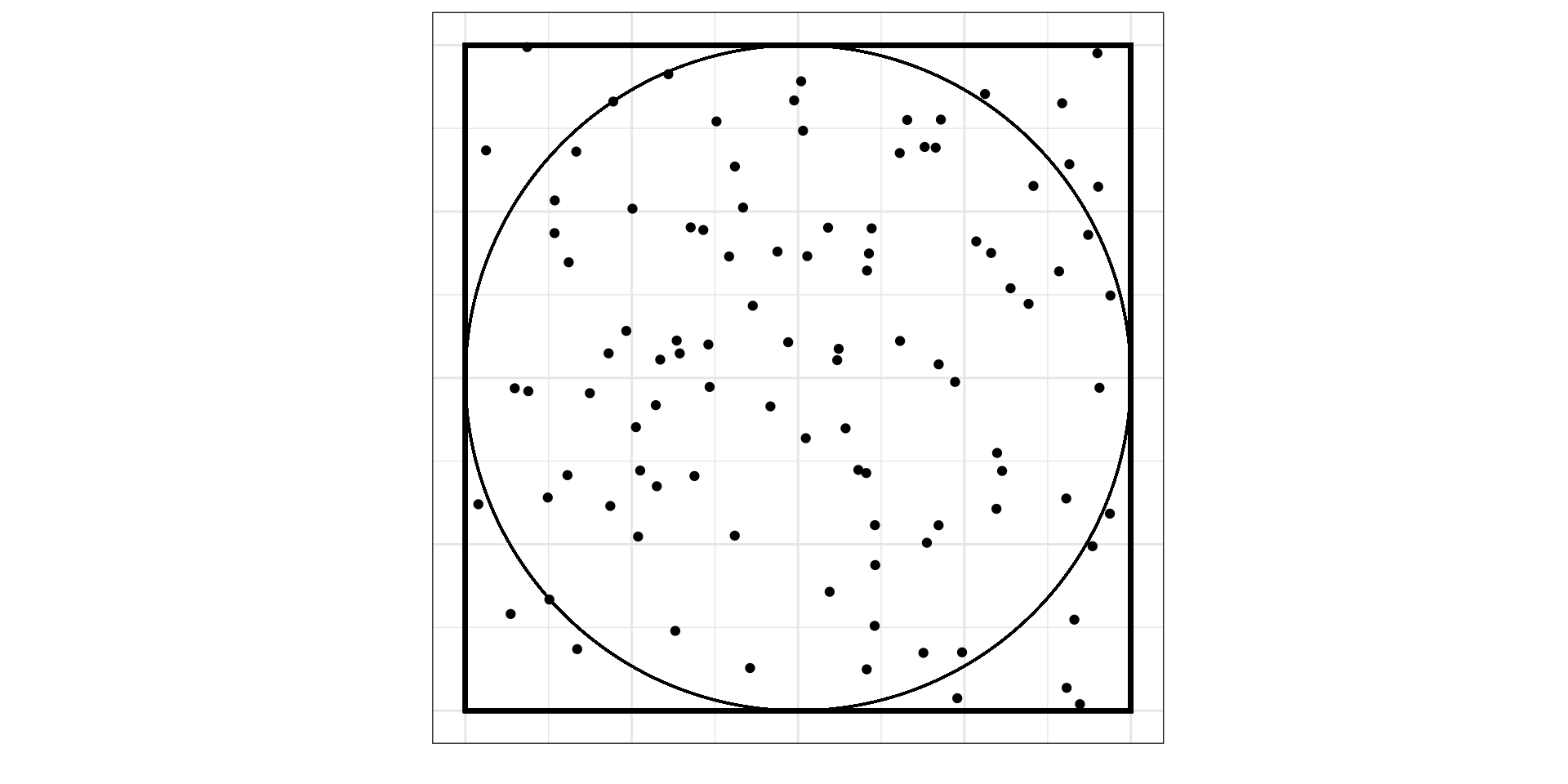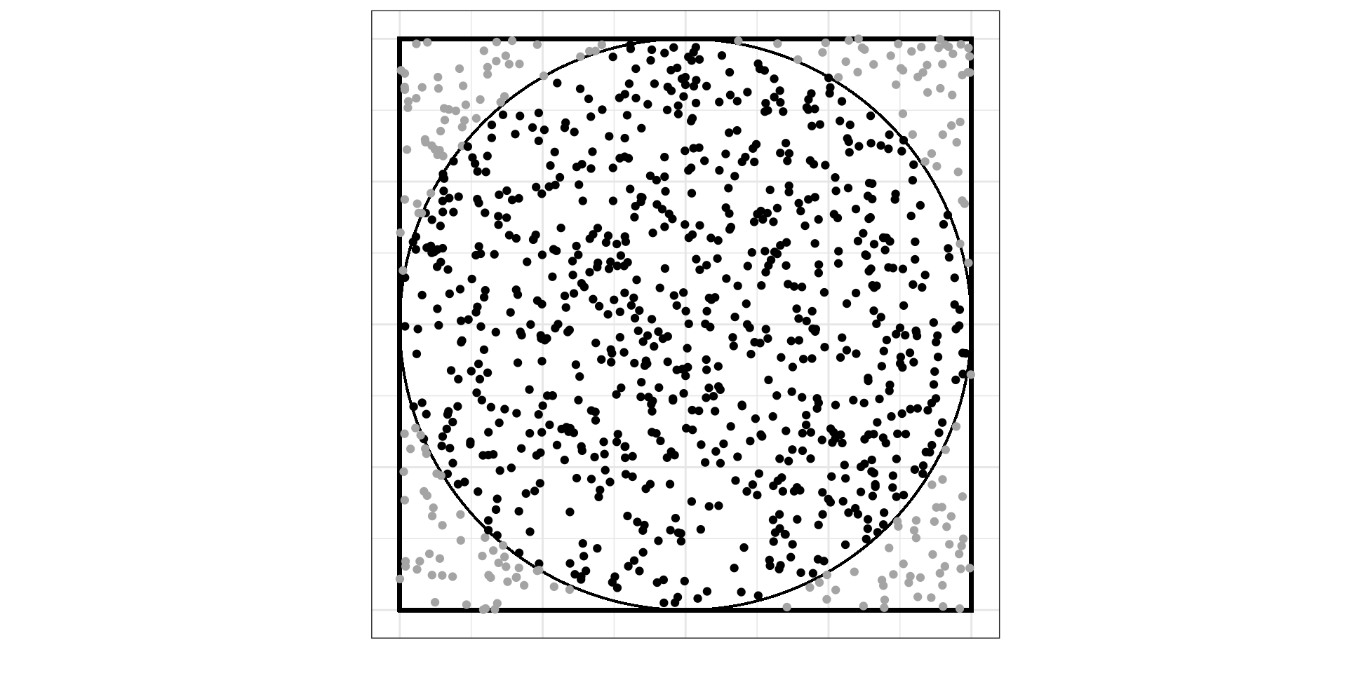 \[ \mathbb{P}(A) = \lim_{N \rightarrow \infty} \frac{n}{N} = \frac{S_\text{circle}}{S_\text{square}} \]