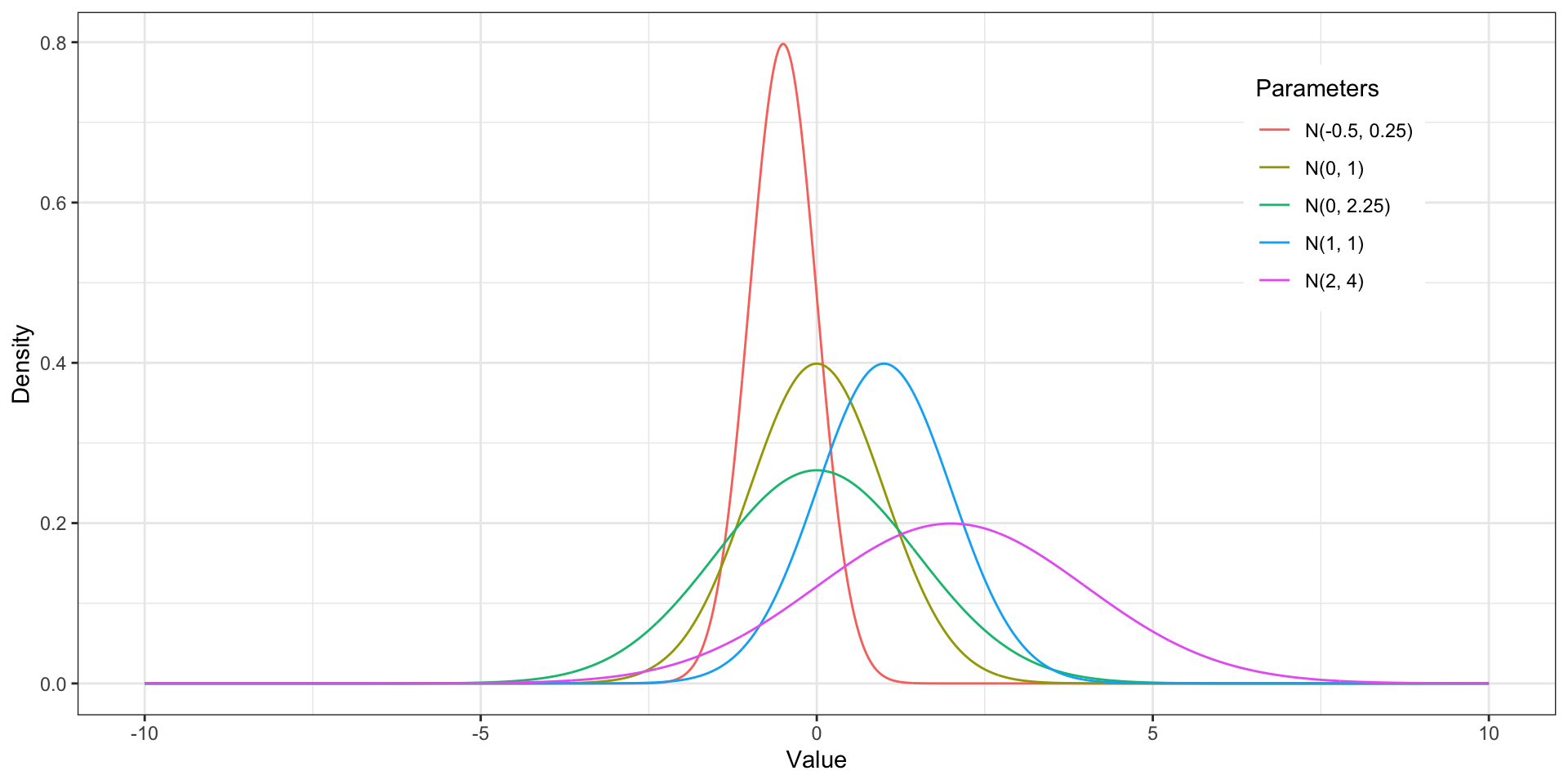 \(x \in \mathbb{R}, \, \mu \in \mathbb{R}, \, \sigma \in \mathbb{R}_{>0}\)