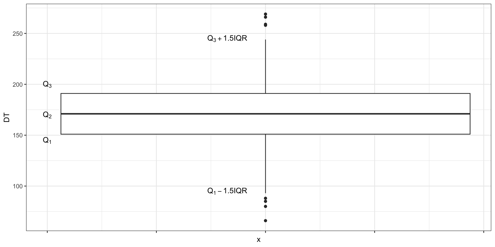 \[ \mathrm{IQR}(X) = Q_3(X) - Q_1(X) \]