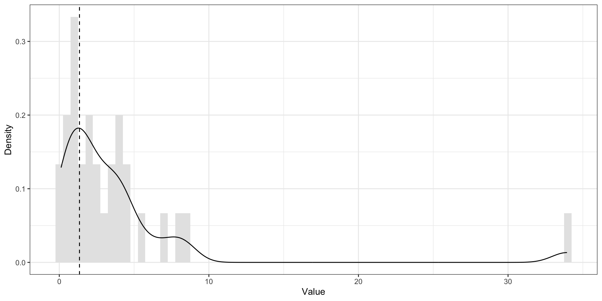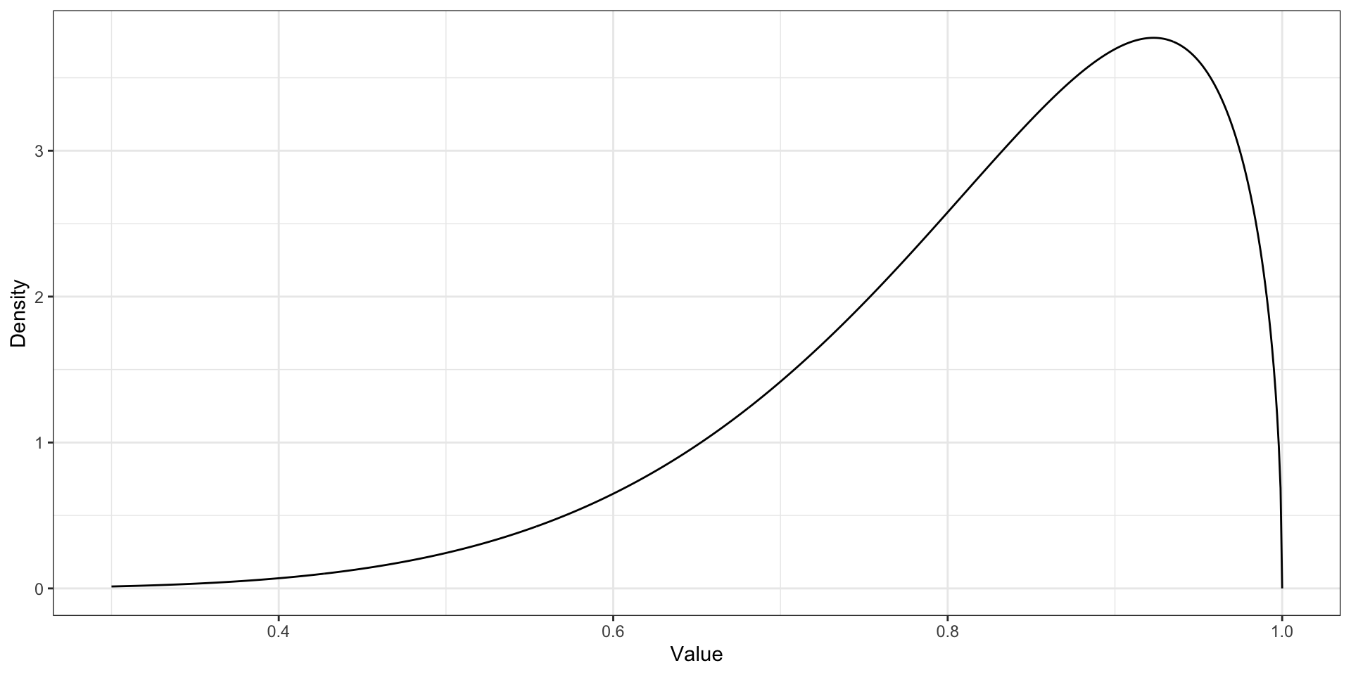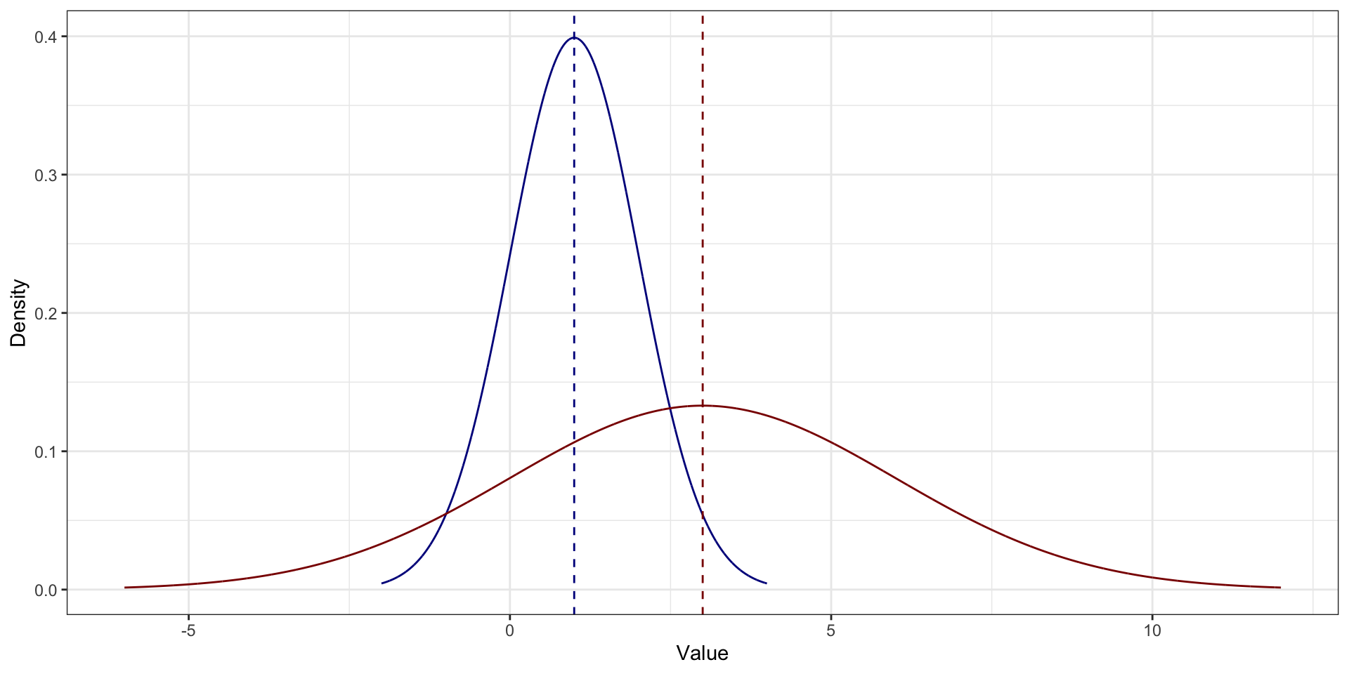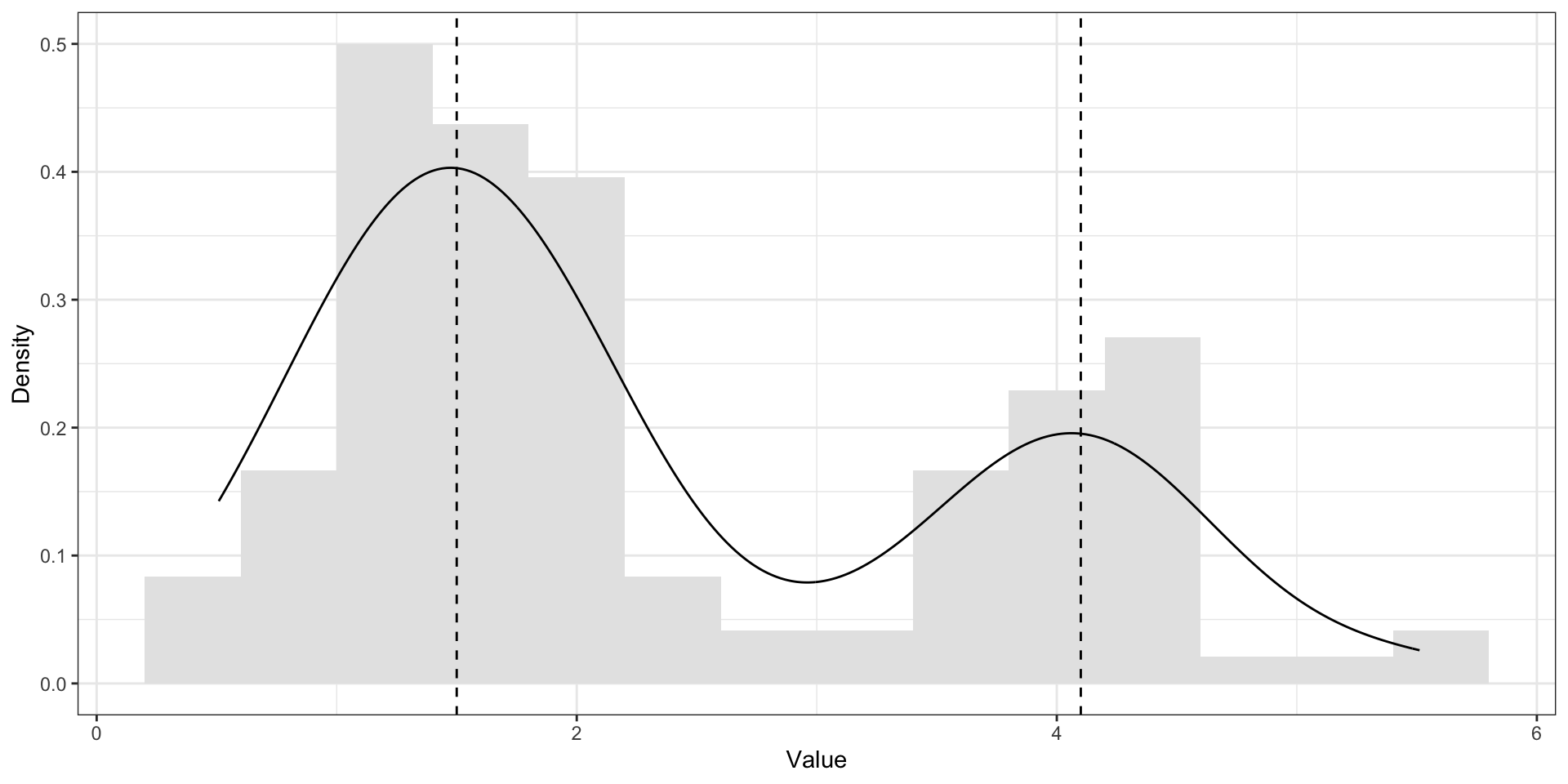 Мода [непрерывной переменной] — это значение переменной, при котором её функция плотности вероятности достигает локального[^local-max-mode] максимума.