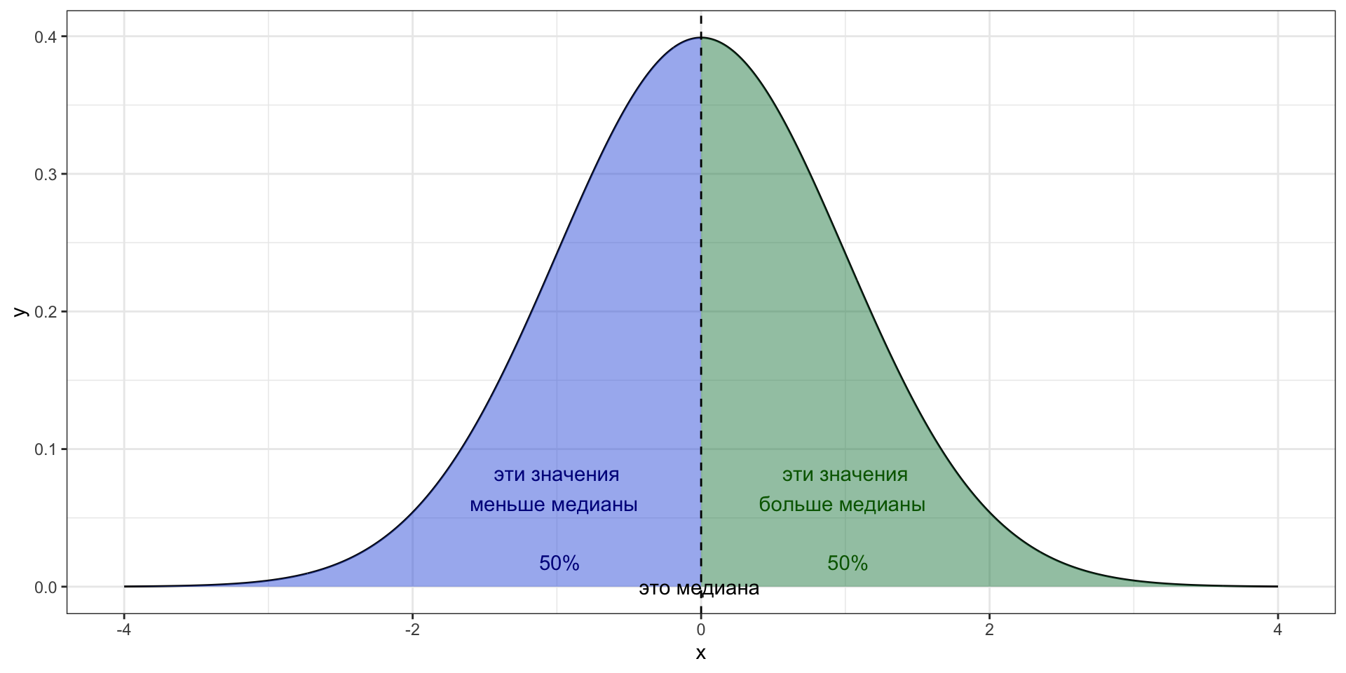 Медиана (median) — это значение, которое располагается на середине отсортированного ряда значений переменной.