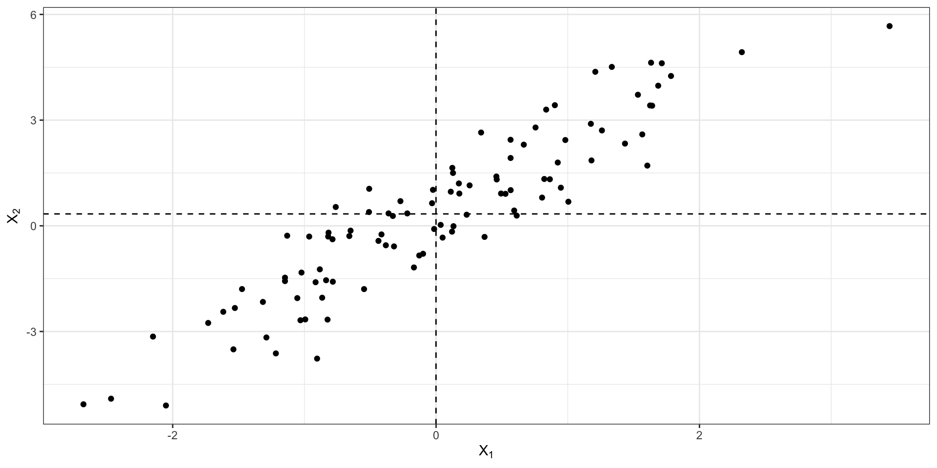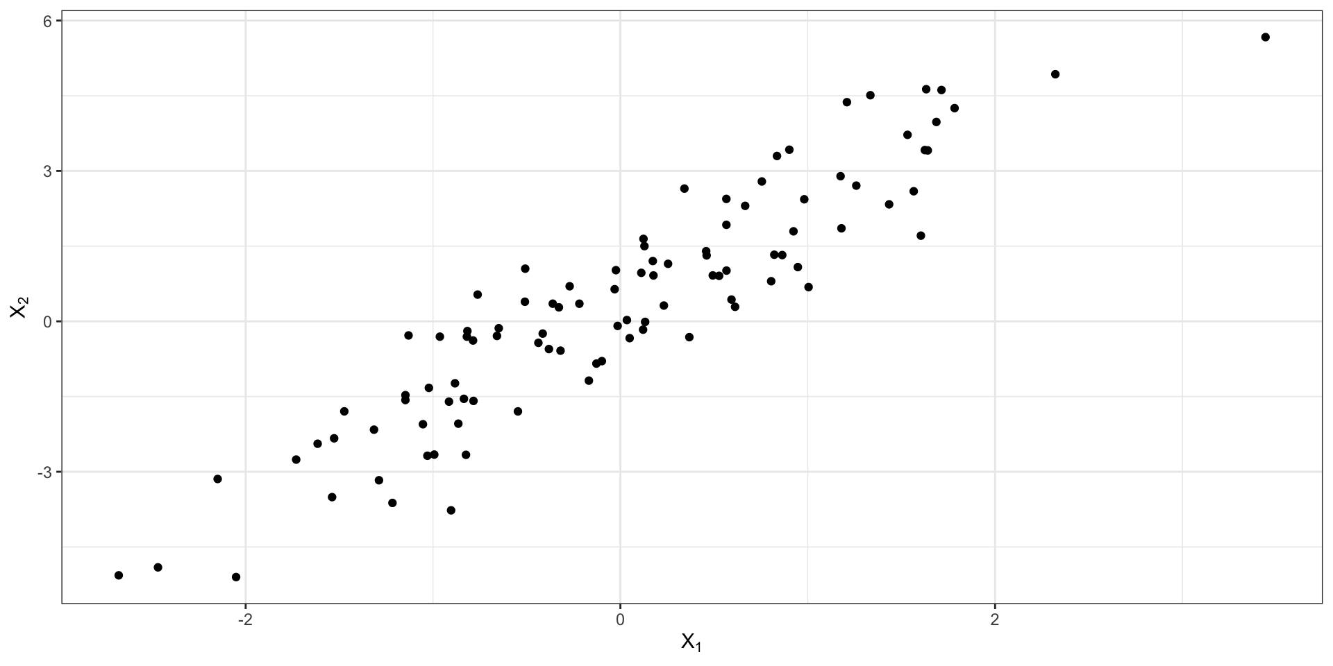 \[ \mathrm{cov}(X_1^*, X_2^*) = \frac{1}{n-1} \sum_{i=1}^n x_{i1}^* x_{i2}^* = \mathrm{corr}(X_1, X_2), \] где \(X_1^*\) и \(X_2^*\) — стандартизированные величины \(X_1\) и \(X_2\) соответственно.