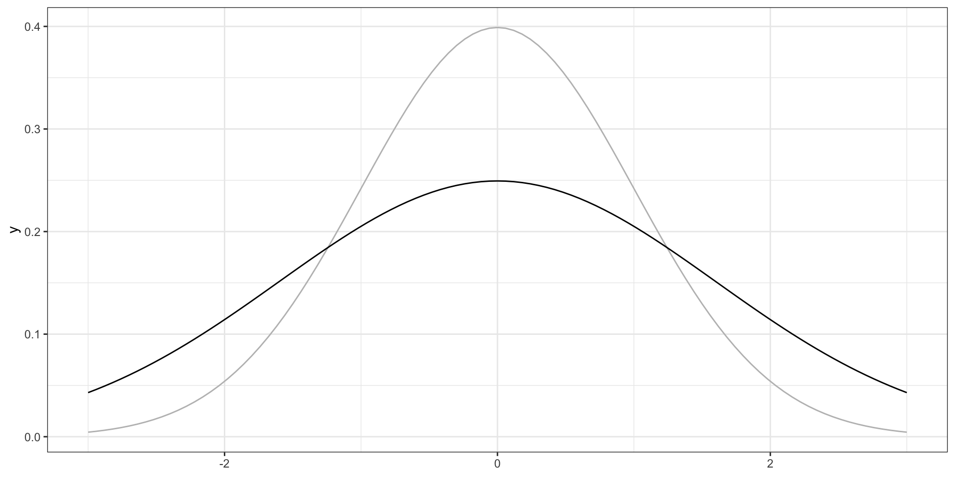 Взглянем на формулу дисперсии: в неё входит среднее арифметическое. То есть для того, чтобы рассчитать дисперсию на выборке, сначала нам необходимо на этой же выборке рассчитать среднее. Тем самым, мы как бы «фиксируем» нашу выборку этим средним значением — у значений нашего распределения становится меньше свободы для варьирования. Теперь свободно варьироваться могут \(n-1\) наблюдение, так как последнее всегда будет возможно высчитать, исходя из среднего значения. По этой причине нам необходимо корректировать исходную формулу расчета дисперсии.