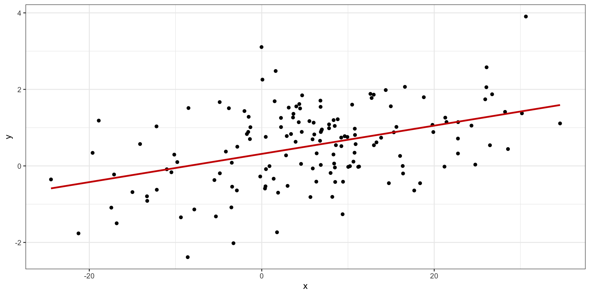 \[ y_i = \beta_0 + \beta_1 x + \varepsilon_i, \]