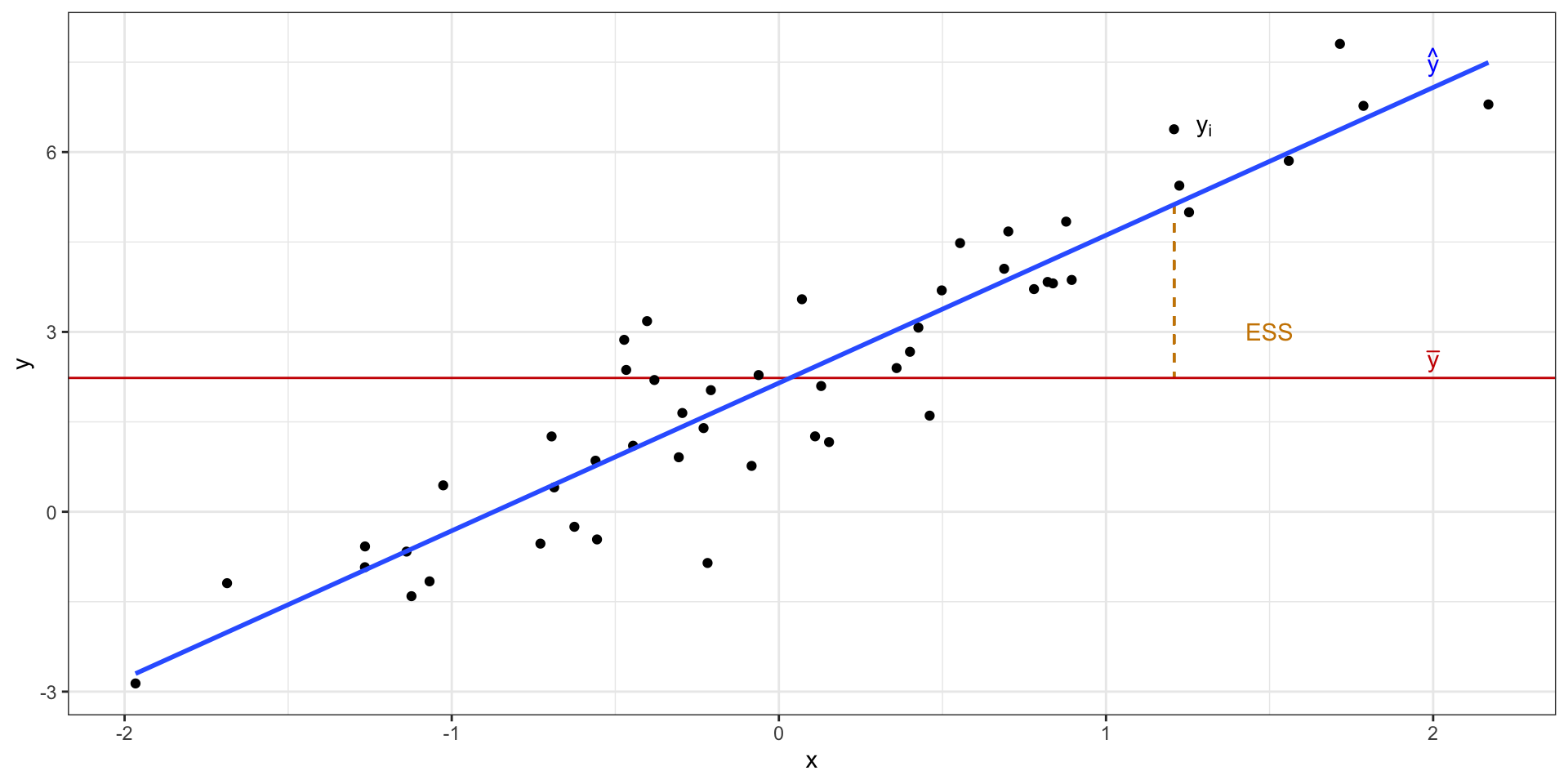 \[ \text{ESS} = \sum_{i=1}^n (\bar y - \hat y)^2 \]