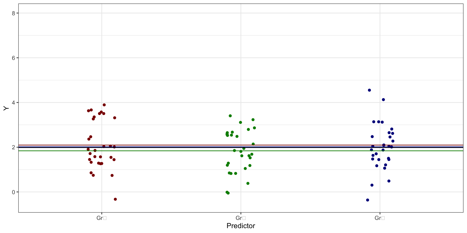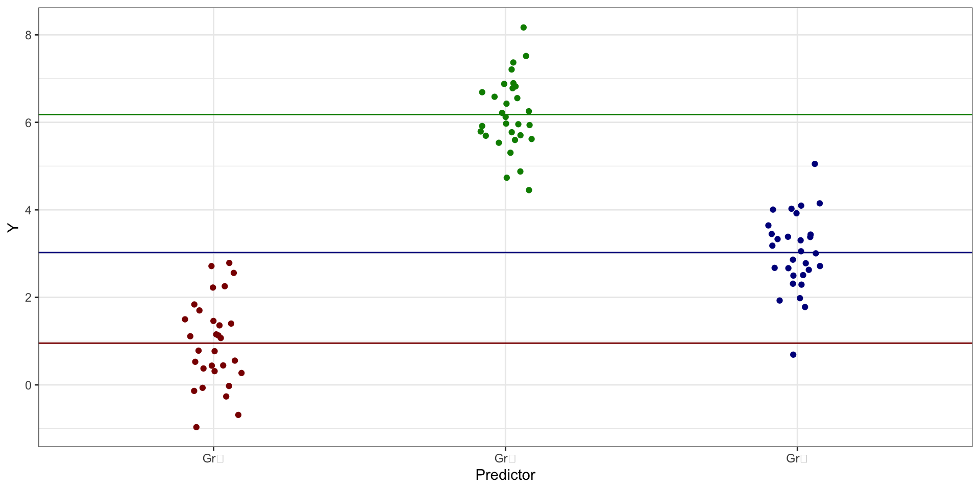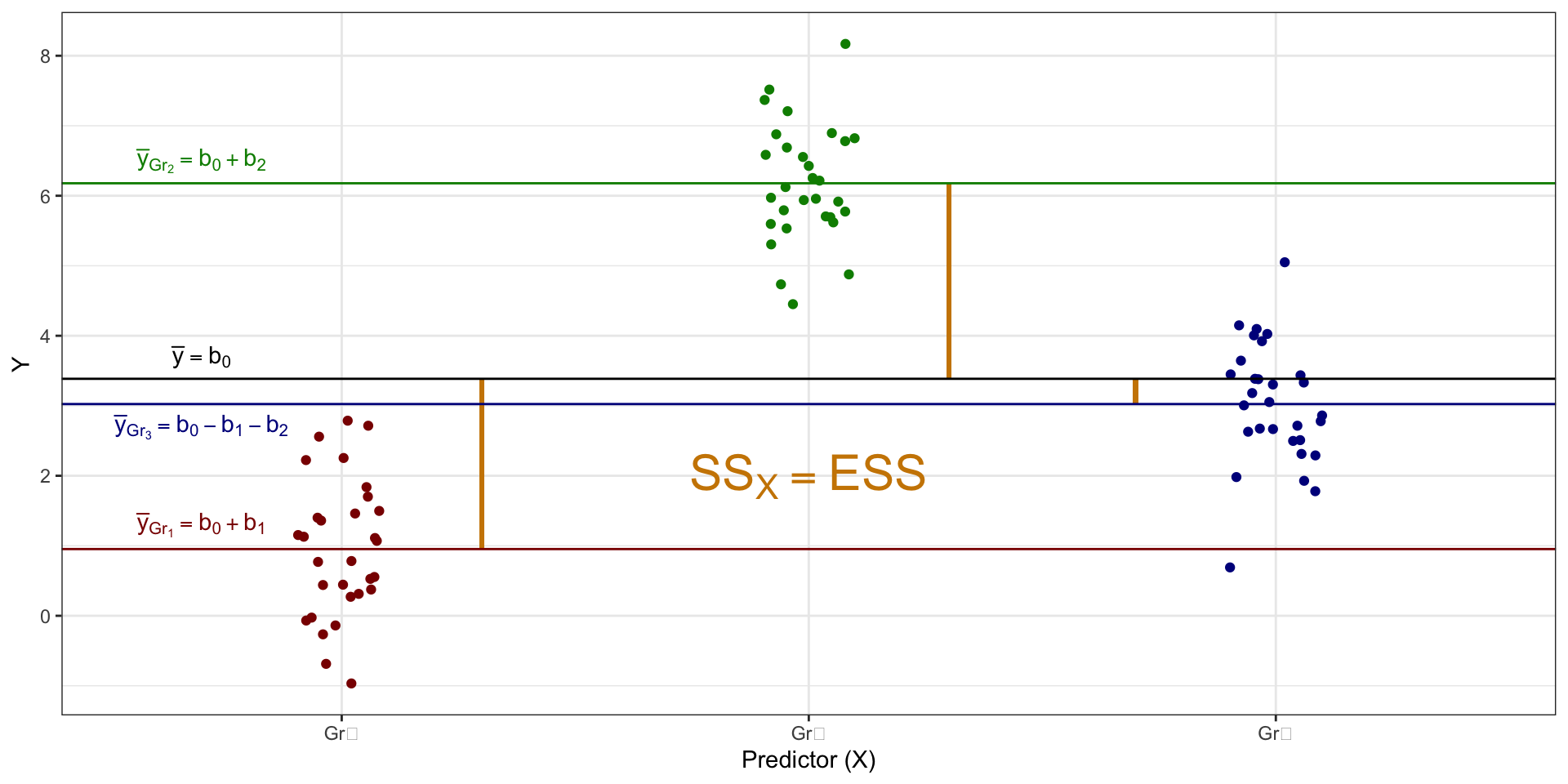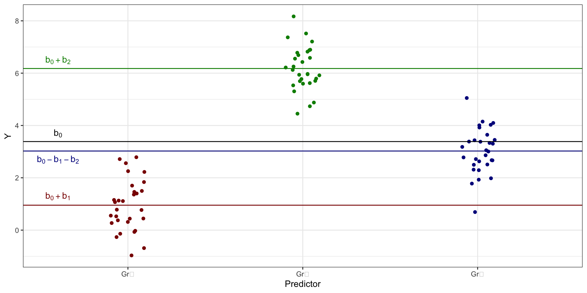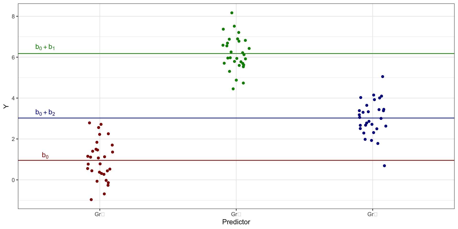 \[ \hat y_i = b_0 + b_1 I_{\text{Gr}_2} + b_2 I_{\text{Gr}_3}, \]