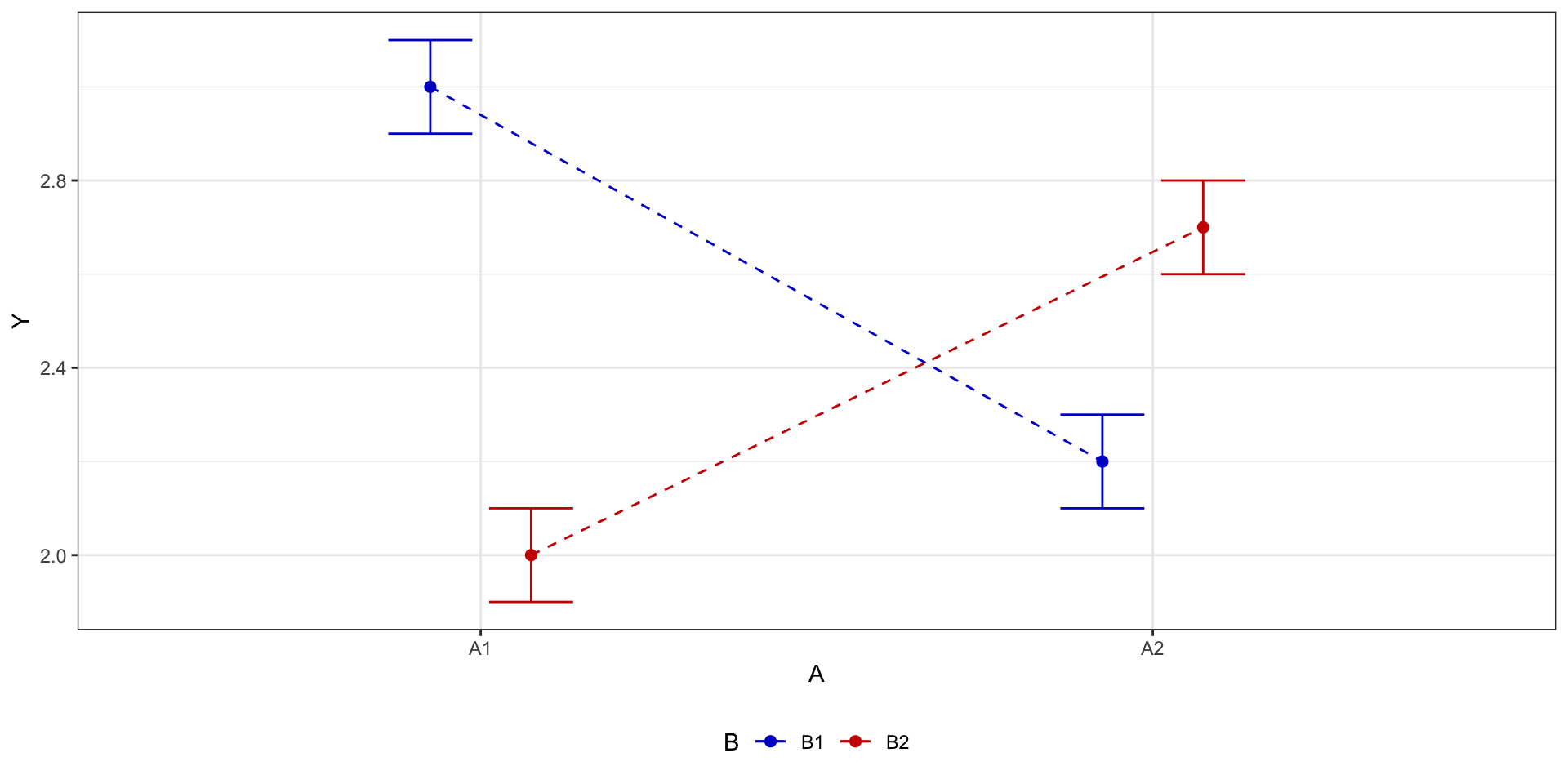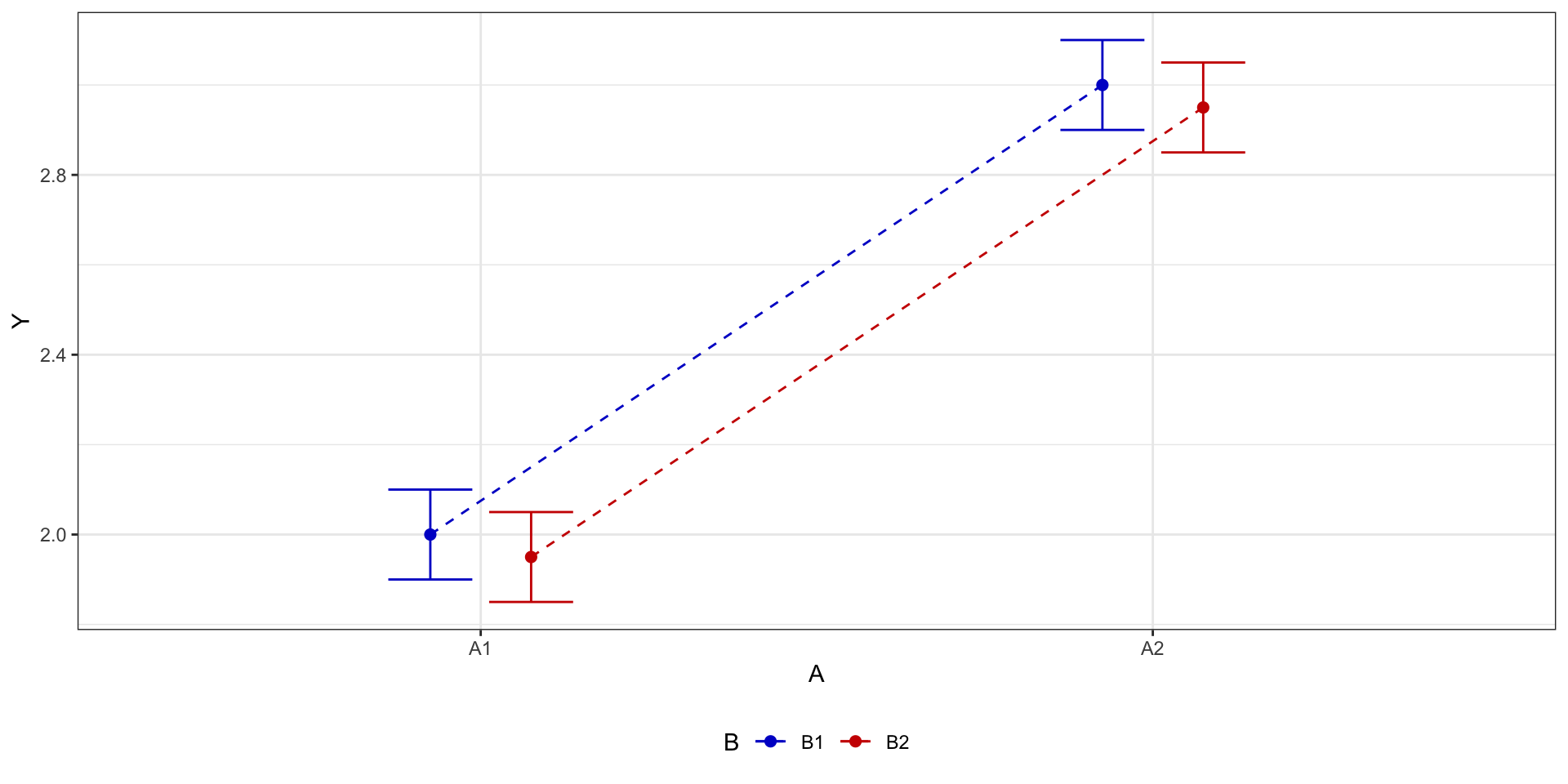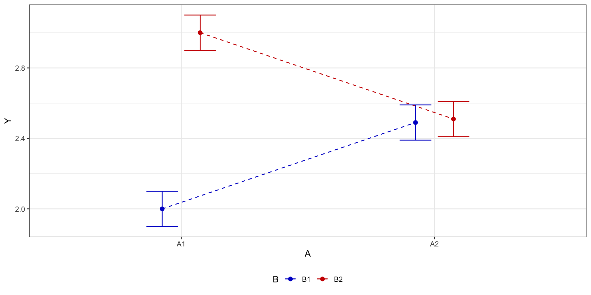 Взаимодействие факторов говорит о том, что один фактор влияет на целевую переменную по-разному в зависимости от уровня второго фактора.