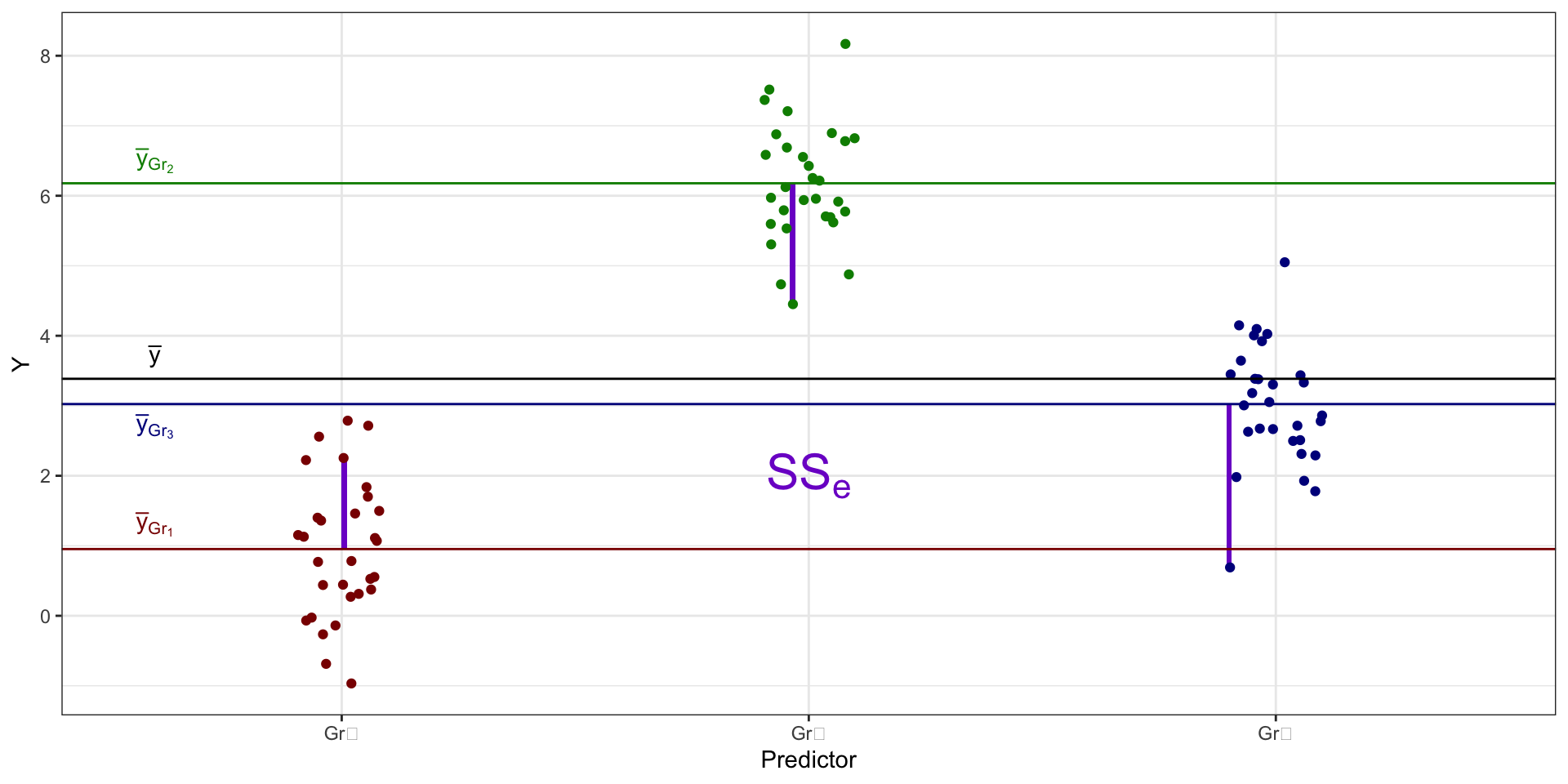 \[ \text{SS}_e = \displaystyle \sum_{j = \text{\{L,G,C\}}} \sum_{i=1}^{n_j} (\bar y_j - \bar y_{ji}), \]